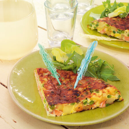 Kartoffel-Erbsen-Tortilla mit Lachs