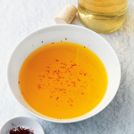 Für den Sugo den Safran zwischen den Fingern zerreiben, mit dem Wein mischen. Stehenlassen, bis sich der Wein gelb färbt. Fleisch sehr klein würfeln. Knoblauch und Schalotten schälen und fein hacken. Thymian waschen und trockenschütteln, Blättchen abstreifen. Tomaten waschen oder häuten und sehr klein würfeln, dabei Stielansätze wegschneiden.