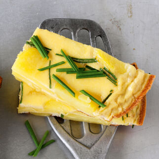 Eine ofenfeste Pfanne oder flache Form fetten. Die Eiermilch mit Kartoffeln, Schinken und Schnittlauch mischen und hineingeben. Im heißen Ofen (Mitte, Umluft 200°) 25-30 Min. garen, bis der Teig schön aufgegangen und leicht gebräunt ist. Sofort servieren, dazu schmeckt grüner Blattsalat.
