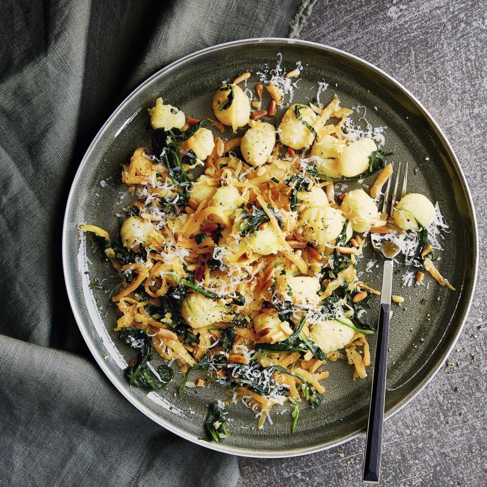 Kartoffelgnocchi mit Kürbis und Spinat