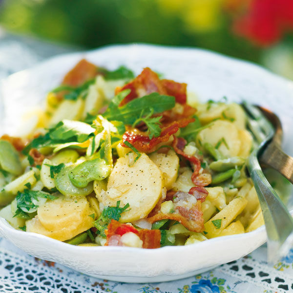 Kartoffelsalat mit dicken Bohnen und Rucola