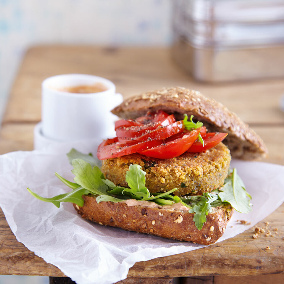 Ein knuspriges Patty aus Quinoa und Kichererbsen, dass das Herz eines jeden Vegetariers höher schlagen lässt. Am besten gleich ausprobieren!
