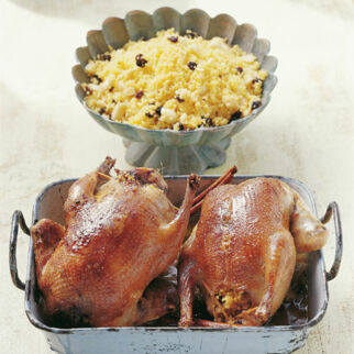 In einem Topf das Olivenöl erhitzen. Zwiebeln und Knoblauch darin glasig dünsten. Dann die Maronen hinzugeben und für ca. 3 Minuten mitbraten. Mit dem Portwein ablöschen und mit dem Gemüsefond aufgießen.
