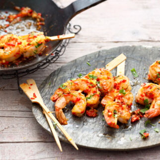 Bereite die Knoblauchgarnelen rechtzeitig fürs Raclette zu, sie müssen 2 Stunden in Würzöl marinieren.