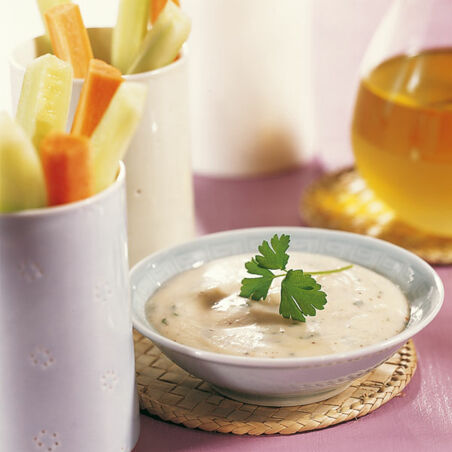 Knoblauch mit der Messerspitze aus den Häuten lösen und mit der Sahne im Mixer fein pürieren. Entweder im Topf noch einmal kurz erwärmen und mit Salz, Pfeffer und Zitronensaft abschmecken. Oder gleich abschmecken und lauwarm oder kalt essen.