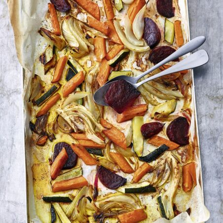 | 800 g | Gemüse (z. B. Möhren, Fenchel, Zwiebel, Zucchini, Rote Bete) |