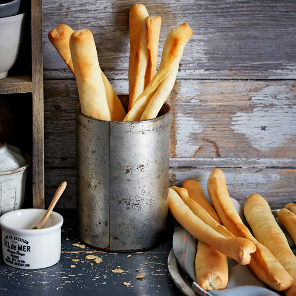 Ganz frisch gebackene Grissini schmecken einfach göttlich! Knabbern Sie sie solo oder genießen Sie sie mit Antipasti. Gut verschlossen in einer Blechdose, bleiben sie 1 – 2 Wochen frisch. Wenn Grissini nach längerem Lagern nicht mehr ganz so knusprig sind, backen Sie sie einfach im auf 200° vorgeheizten Ofen2 – 3 Min. auf. Sie schmecken dann wieder wie frisch gebacken.