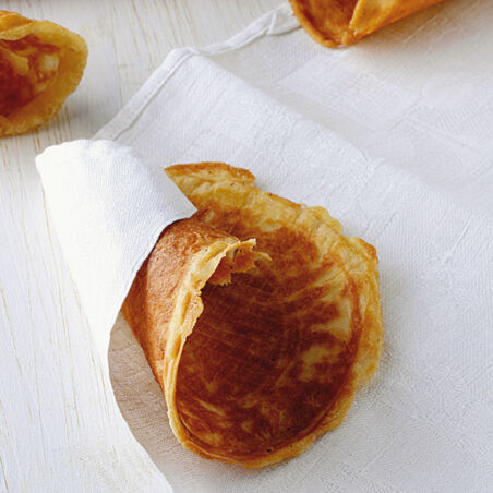 Den Hörnchenautomat vorheizen, die Backflächen dünn einfetten. Knapp 2 EL Teig in die Mitte der unteren Backfläche geben, das Waffeleisen schließen. Die Waffeln nacheinander in ca. 1 Min. goldgelb backen. Sofort auf ein Geschirrtuch legen und mit dessen Hilfe zu Tüten formen. Kurz festhalten, damit die Tüte nicht wieder aufgeht, dann auf einem Kuchenrost auskühlen lassen.