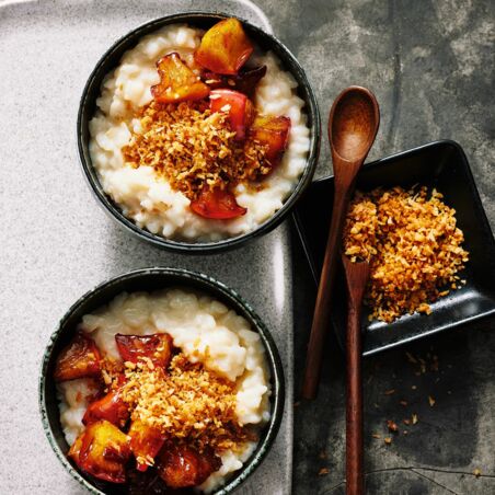 Der Milchreis schmeckt genauso mit Apfelmus und Zimt - das ist der Klassiker schlechthin. Du kannst den Milchreis auch hervorragend mit Mandel- oder Haferdrink zubereiten. Falls du keinen Reis-Kokos-Drink findest, kannst du einfach 400 ml Kokosdrink verwenden und diesen mit Reisdrink (oder auch Hafer-, Mandel- oder Sojadrink) auf 1 l auffüllen.