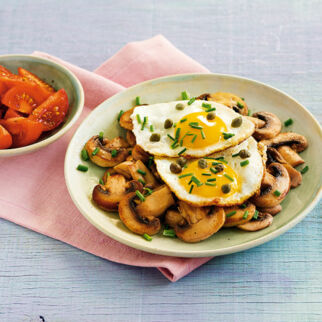 Schlichtes Rührei ist Ihnen zu langweilig? Kein Problem: In diesem hier landen jede Menge Kräuter. Dazu gesellen sich Tomaten und Champignons. Einfach köstlich!