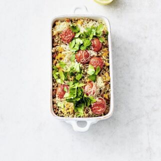 Spinat, Frühlingszwiebeln und Cashewkerne dazugeben und alles einmal durchrühren, mit Salz, Pfeffer und Rosmarin würzen. Dann die Masse in eine Auflaufform füllen und im heißen Ofen ca. 15 Min. backen, bis der Auflauf goldbraun wird.