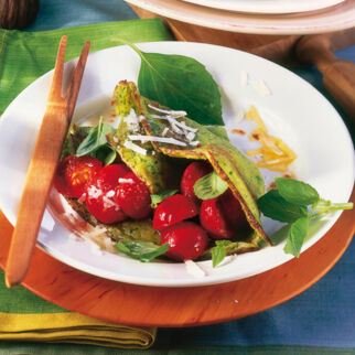 Etwas Öl in einer beschichteten Pfanne erhitzen, darin dünne Crêpes ausbacken, im Ofen bei 60° warm halten. Mit dem Lauchgemüse füllen.