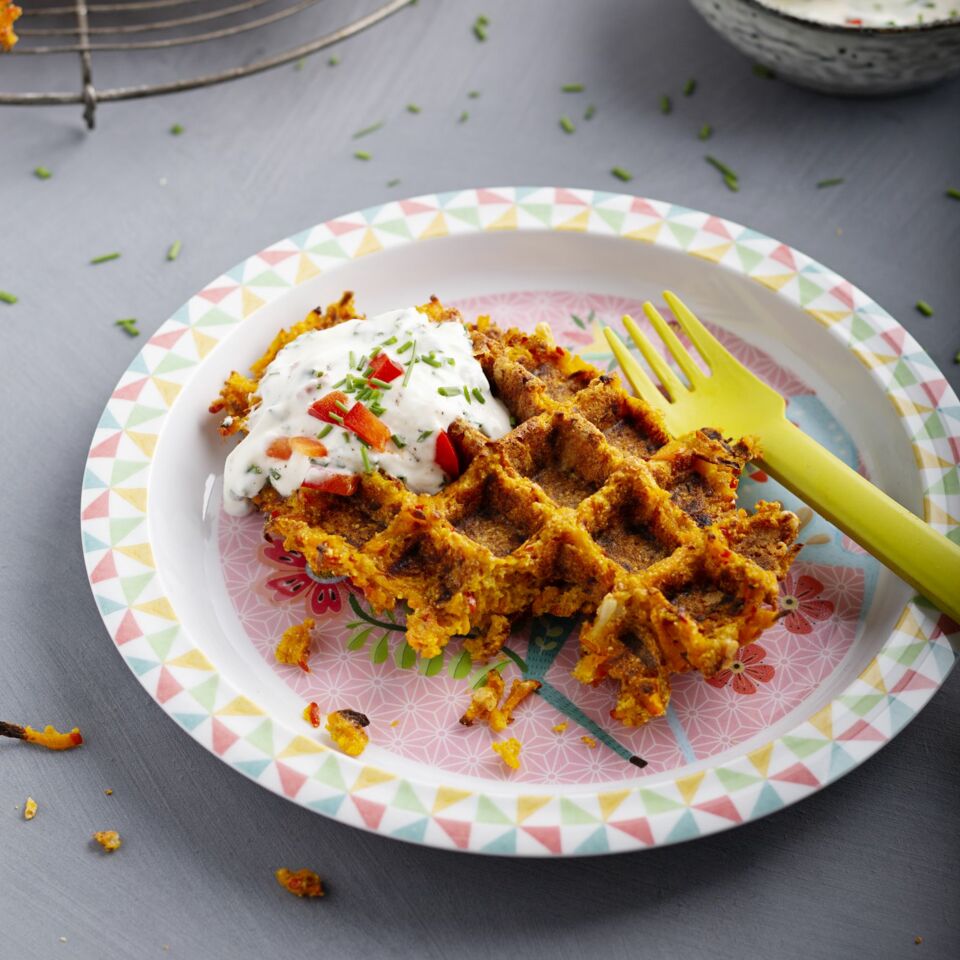 Man kann die Waffeln pur oder mit einem Dip, beispielsweise Hummus, Avocadocreme, Kräuter- oder Paprikaquark, genießen.