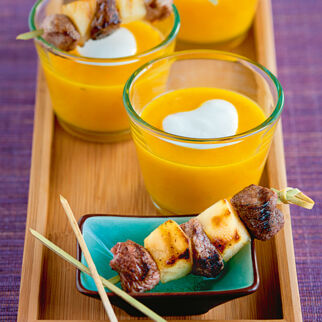 Zu einem regnerischen Abend am prasselnden Kaminfeuer passt nichts besser als eine feine Kürbissuppe: gemütlich und ein bisschen behäbig.
