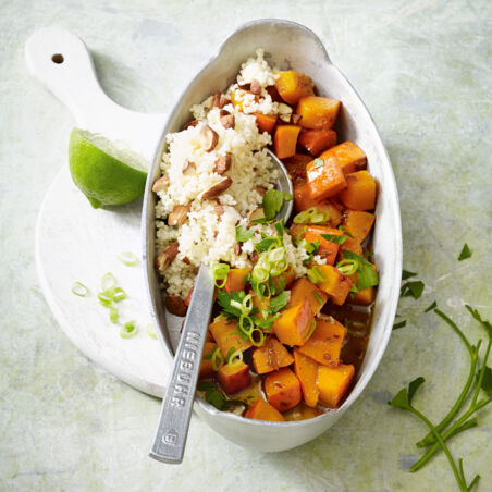 Kürbis-Wok mit Mandel-Couscous