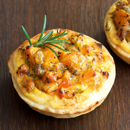 Kürbis und getrocknete Tomaten verleihen diesen Küchlein einen fruchtig-süßen Geschmack, der wunderbar zu trockenem Weißwein oder einem Aperitif passt.