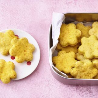 Mit angefeuchteten Händen aus je 1 EL Teig eine Kugel formen und die Kugeln mit etwas Abstand auf ein mit Backpapier belegtes Backblech setzen. Die Teigkugeln vorsichtig mit dem Handballen plattdrücken. Die Taler im Ofen (Mitte) 20-22 Min. backen, herausnehmen und auf einem Kuchengitter auskühlen lassen.