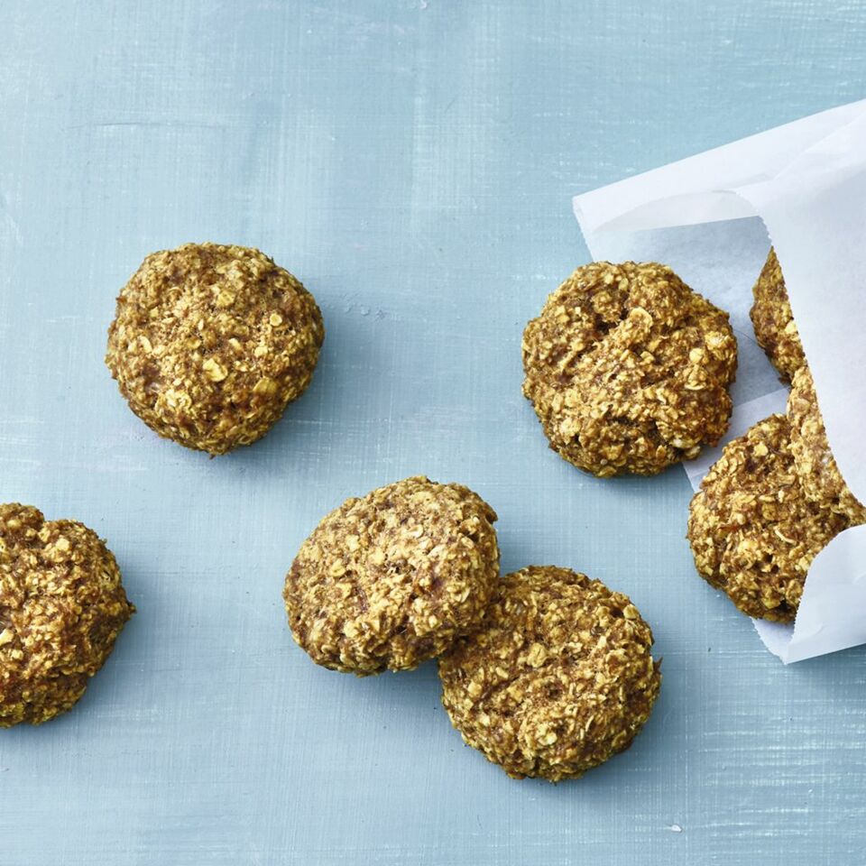 Diese saftigen Taler sind zuckerfrei und werden nur aus Haferflocken, Mandelmus, Kürbispüree und Bananen gemacht.