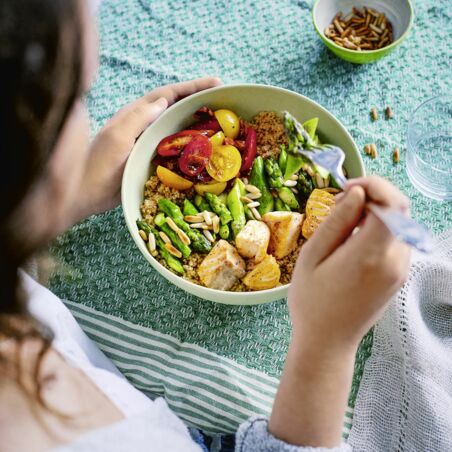 Die lecker-leichte Lachs-Bowl ist schnell zubereitet und ist nicht nur für Spargel-Fans ein Genuss.