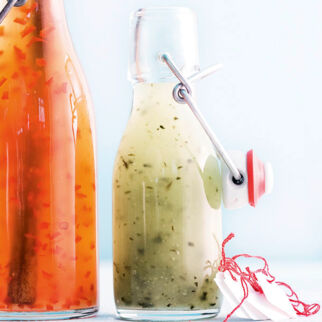 Ofen auf 200° vorheizen. Für die Sauce Schnittlauch waschen, trockenschütteln und in Röllchen schneiden. Wasabipaste mit Limettensaft, Speisestärke, Crème double und etwas Salz glatt verrühren. Den Schnittlauch unterrühren.