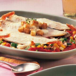 Den Fisch im Backofen (Mitte, Umluft 180°) 10-15 Min. (je nach Dicke der Filets) garen. Die beiseite gelegten Frühlingszwiebelringe aufstreuen.