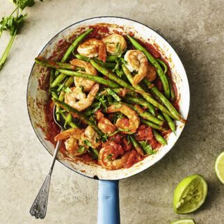 Tomatenmark, übriges Harissa und Honig dazugeben und unter Rühren 1-2 Min. anrösten. Mit der Brühe ablöschen und offen bei mittlerer Hitze 8-10 Min. köcheln lassen, bis die Flüssigkeit fast verkocht ist. Die Tomaten unterrühren und mit Zimt, Piment, Salz und Pfeffer würzen. Die Bohnen zugedeckt bei kleiner bis mittlerer Hitze 30 Min. garen. Dann offen 5-10 Min. garen, bis die Bohnen richtig weich sind und die Tomatensauce dicklich eingekocht ist.
