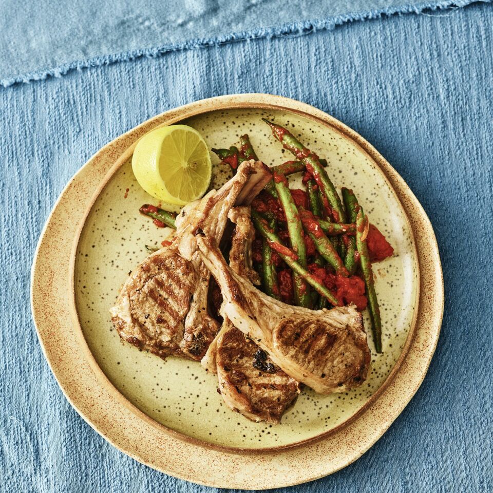 Lamm ist besonders in arabischen Ländern hoch im Kurs. diese Koteletts mit Bohnen-Tomaten-Gemüse schmeckt herrlich nach Sommer.