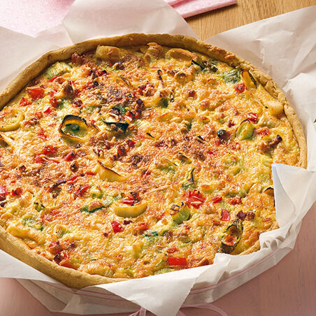 Die Torte - auch Quiche kann wunderbar warm aber auch kalt genossen werden. Beispielsweise bei einem gemütichen Picknick im Park.