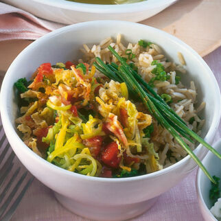 Den warmen Wirsing mit den Paprikastreifen und der Sauce locker vermischen. Den Salat mit Salz und Pfeffer abschmecken und noch lauwarm servieren.