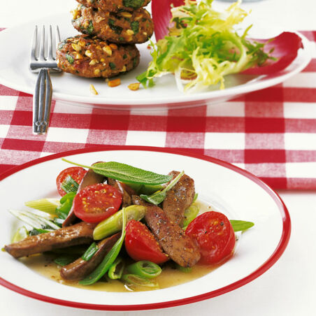 Ein schnelles Gericht, bei dem die Leber mediterran - mit Cocktailtomaten und Salbei - zubereitet wird. Bandnudeln oder Risotto dazu, und der Genuss ist perfekt!