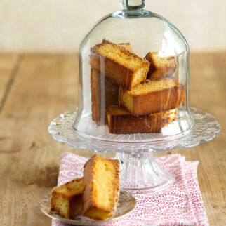 Den Backofen auf 180° vorheizen. Den Kuchen mit einem scharfen Sägemesser in ca. 20 dünne Scheiben schneiden, diese für kleine Zwiebäcke nochmals halbieren. Die Scheiben auf ein mit Backpapier belegtes Backblech legen. Im Ofen (Mitte) ca. 10 Min. backen, wenden und im ausgeschalteten Ofen bei leicht geöffneter Tür auskühlen lassen.