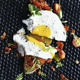 Die Toasts mit der Mango-Guacamole bestreichen und mit je 1 Scheibe Parmaschinken belegen, auf zwei Teller verteilen. Jeden Toast mit jeweils 1 Spiegelei darauf anrichten und den leichten Max servieren.