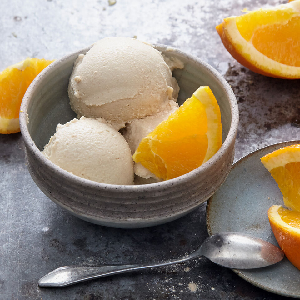 Lucuma, die peruanische Superfrucht, kann man in Pulverform als alternatives Süßungsmittel einsetzen. Hier verfeinert es köstliches veganes Eis.