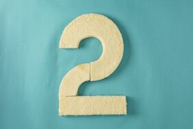 Von dem runden Kuchen ein Viertel so herausschneiden, dass die Schnittkanten jeweils gerade Flächen ergeben. Mit der Öffnung nach links unten zeigend auf die obere Hälfte einer Kuchenplatte legen. Das abgeschnittene Viertel mit der Rundung nach links zeigend an die untere Schnittfläche des runden Kuchens legen. Zuletzt an die noch freie Schnittfläche des Viertels einen Teigstreifen quer anlegen, sodass sich schließlich eine Zwei ergibt.
