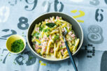 Nudeln in die Auflaufform füllen, mit dem übrigen Käse bestreuen und die Butterbrösel gleichmäßig darüber verteilen. Im Ofen (Mitte) in ca. 10 Min. goldbraun gratinieren. Wer mag, schaltet die Grillfunktion nach 5 Min. dazu - dann aber dabeibleiben, damit nichts verbrennt!