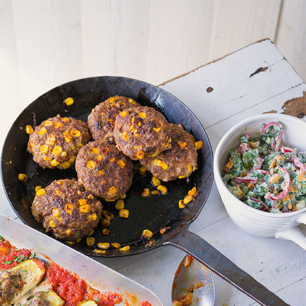 Mit Frikadellen machen Sie Klein ud Groß immer eine Freude. Dazu gibt es einen Cole Slaw als knackige Beilage.