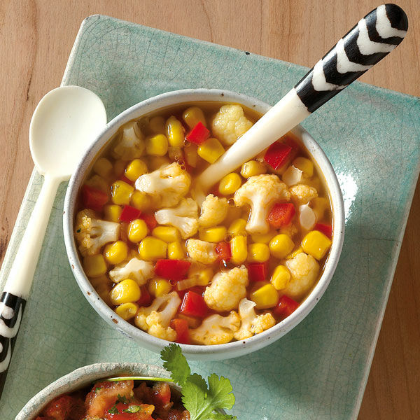 Eine Sauce mit Mais und Blumenkohl ist doch einmal etwas anderes und passt ausgezeichnet zu allem, das vom Grill kommt.