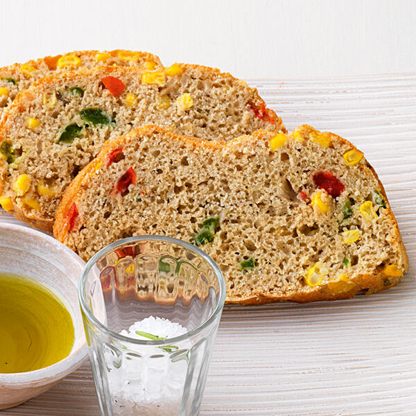 Das Maisbrot ist mit den roten und grünen Paprikaschoten ein fröhlich buntes Brot - und es hält sich schön lange frisch.
