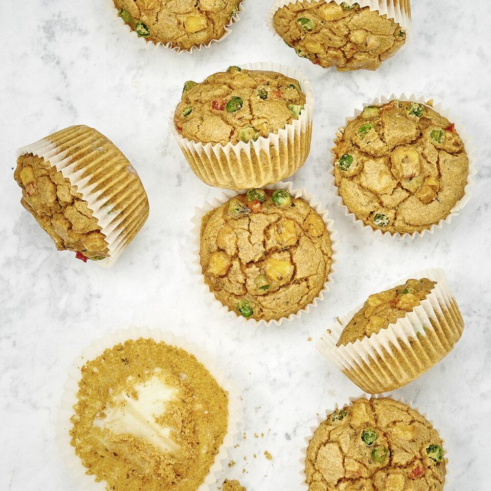 Herzhafte Muffins mit Mais, Paprika und Erbsen