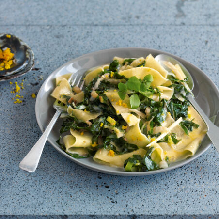 Diese raffinierte Sauce mit Mangold und Orange schmeckt einfach nur köstlich, am besten kombiniert mit guter Pasta.