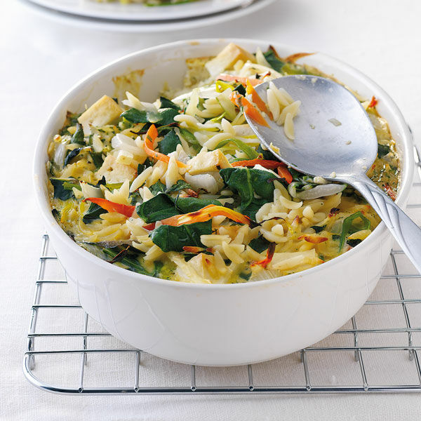Ein besonderes Essvergnügen mit den kleinen, reisförmigen griechischen Nudeln, die es mittlerweile auch im Supermarkt gibt.
