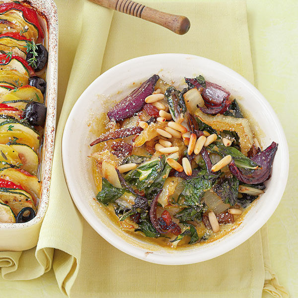 Ein herrlich aromatischer Auflauf mit Mangold, marinierten Rosinen und Pinienkernen. Gelingt leicht und schmeckt unwiderstehlich gut.