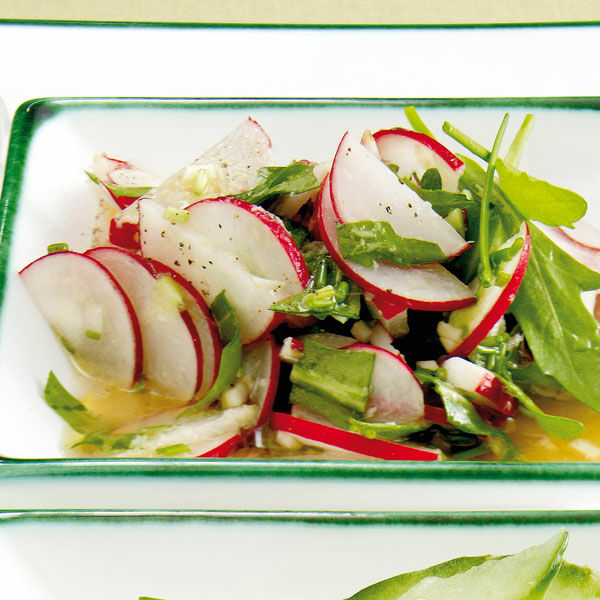 Frischer Meerrettich gibt hier den Ton an. Die Radieschen sind eine frische Beilage zu Kurzgebratenem.
