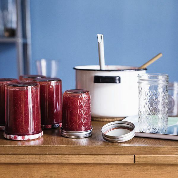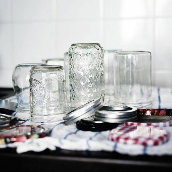 Die Gläser - am besten mit Twist-off-Deckel, also einem Schraubdeckel mit Innenbeschichtung - und die Deckel gründlich mit heißem Wasser ausspülen oder ausdämpfen, dann auf einem Küchentuch zum Trocknen bereitstellen.