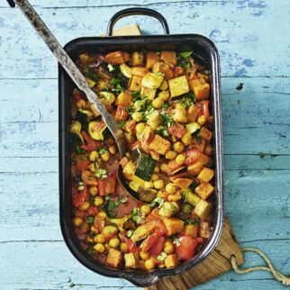 Fein dazu: 150 g Joghurt mit 2 EL gehacktem Koriandergrün, ½ TL gemahlenem Kreuzkümmel und 1 EL Olivenöl verrühren, mit Salz und Pfeffer würzen.