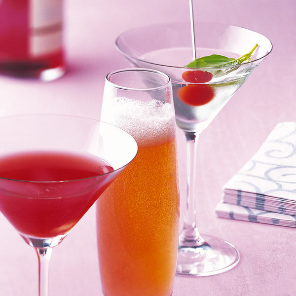 8-10 Eiswürfel dazugeben, alles 6-8 Sek. kräftig rühren. Durch das Barsieb in die Schale gießen. Die Tomate und das übrige Basilikumblatt dazugeben.