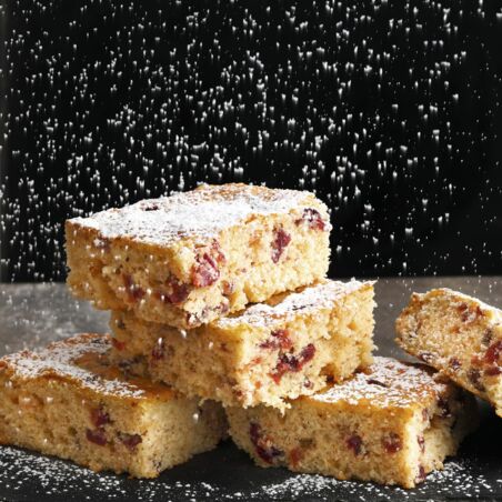 Dies ist kein normaler Blechkuchen, dies ist eine wahre Geschmacksexplosion! Mit fruchtig eingelegten Cranberries und Marzipan.