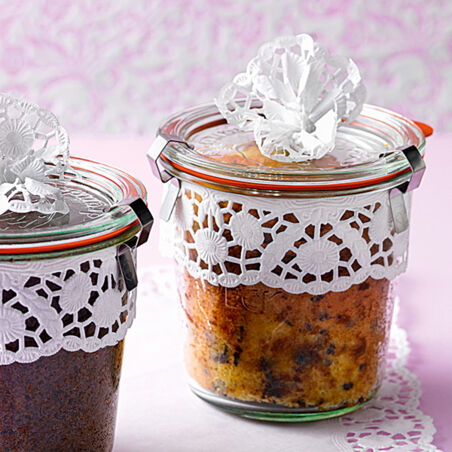 Die Eiweiße mit 1 Prise Salz steif schlagen. Den Eischnee unter den Teig heben. Den Teig in die Gläser füllen und im Backofen (Mitte, Umluft 160°) ca. 40 Min. backen.
