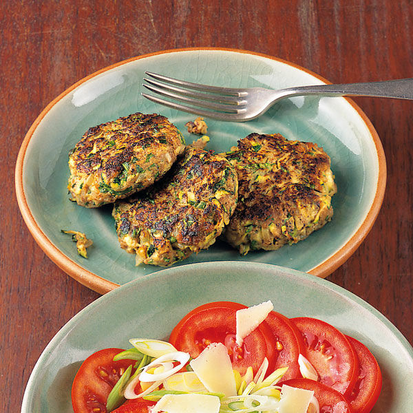 Die vorbereiteten Zutaten mit Tatar, Kräutern und Ei verkneten, salzen, pfeffern und zu 6 flachen Frikadellen formen. Eine beschichtete Pfanne ohne Fett erhitzen und die Frikadellen darin bei mittlerer Hitze in 8-10 Min. von beiden Seiten knusprig braten.