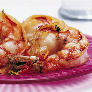 Die Meeresfrüchte auf den Grill legen und bei starker Hitze von jeder Seite 2-3 Min. grillen, dabei nach dem Wenden noch mal mit dem Knoblauchöl einpinseln.